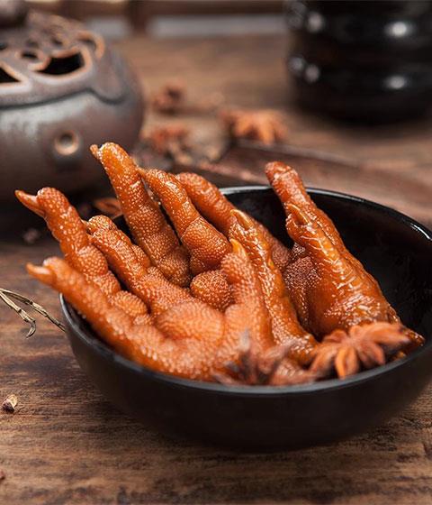 ??洪瀨雞爪是產于福建省南安市洪瀨鎮。泉州的洪瀨鎮鹵味雞爪而出名,這看起來不怎么起眼的小吃,背后卻有一套嚴謹的制作工藝,所以才有雞爪透骨香、筋道濃郁的口味。